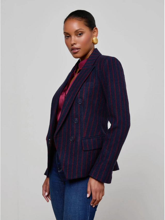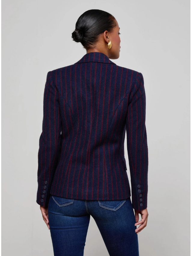 L'Agence Kenzie Pinstriped Blazer in Midnight/Red