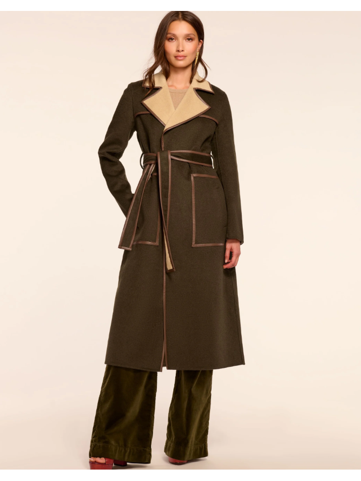 Ramy Brook Josie Coat in Deep Olive/Camel