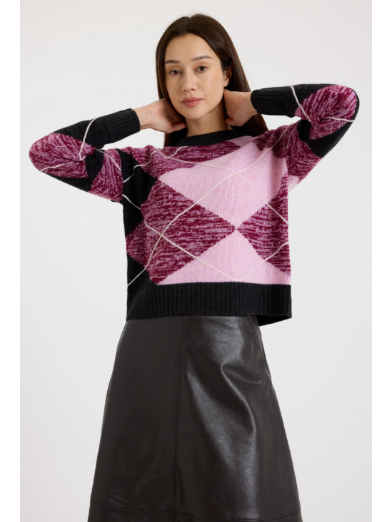 The ultimate blend of preppy, cool, nerd-chic with a touch of Ivy League sophistication, this argyle sweater is a standout piece with personality